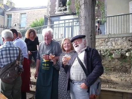 La photo nous met en mémoire que c’est à Josiane que nous devons tous un grand merci pour ce bon moment et surtout pour la création du clos des vignes ! Nous nous souvenons bien du combat obstiné qu’elle a mené auprès des responsables de la municipalité pour faire planter des vignes sur les talus devant la muraille, rue des Fossés St Pierre. Longtemps, trop longtemps, cet endroit était resté une poubelle et toilette pour chien, désagréable pour les passants, insupportable pour les riverains.
